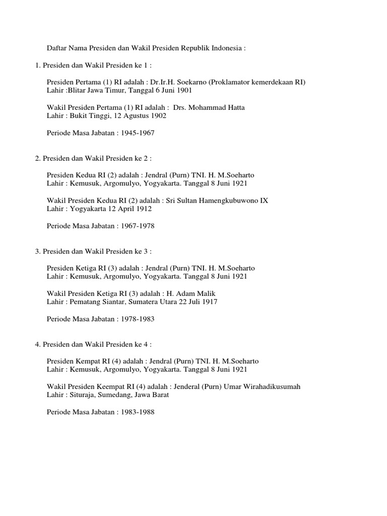 DOC) Daftar Nama Presiden Dan Wakil Presiden Indonesia | Elva …