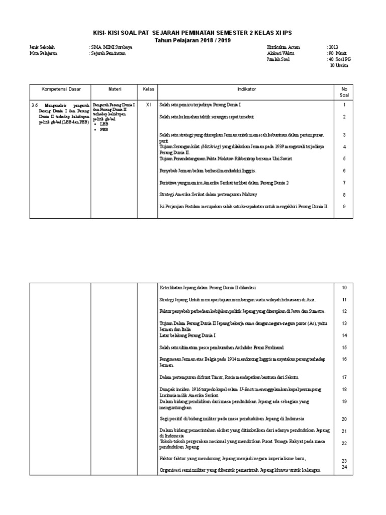 DOC) Kumpulan Soal Sejarah Kelas 11 Kurikulum 2013 | Lulu Zakia …