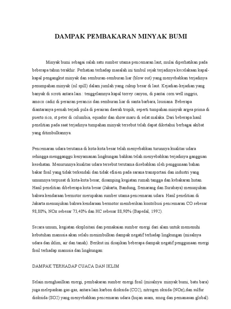 Dampak Pembakaran Bahan Bakar Minyak Bumi Terhadap Lingkungan dan …