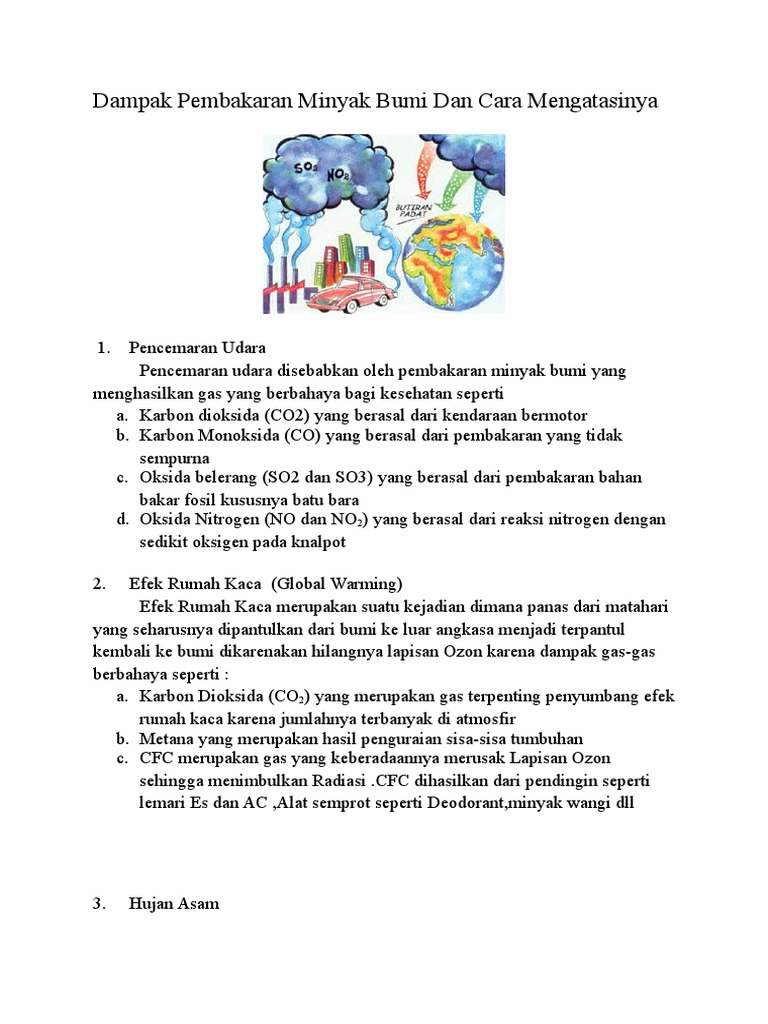 Dampak Negatif Pembakaran / Penggunaan Minyak Bumi terhadap …