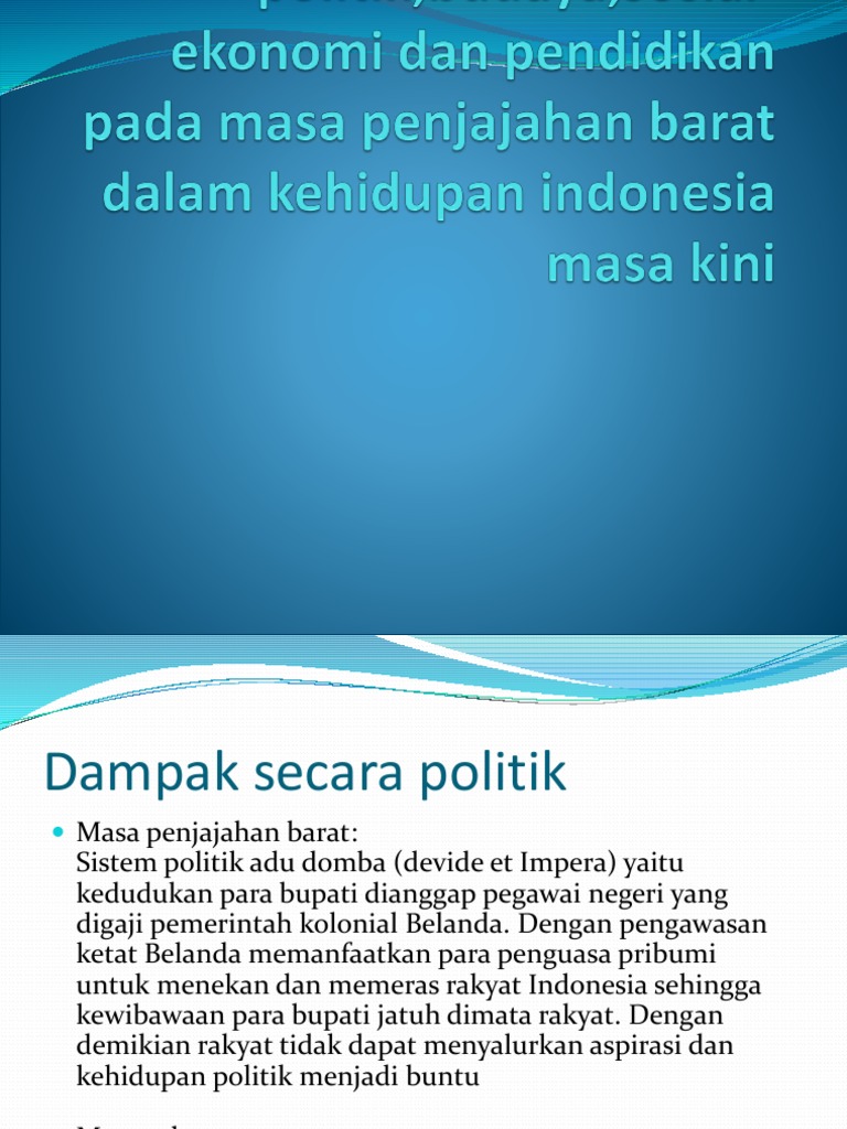 Dampak Penjajahan Barat Di Indonesia - Penjelasan I