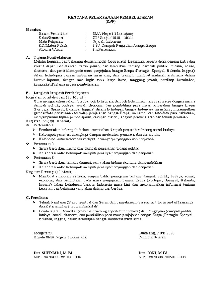 RPP Sejarah Indonesia KD 3.6_Smk SaintrenAl-Hasan