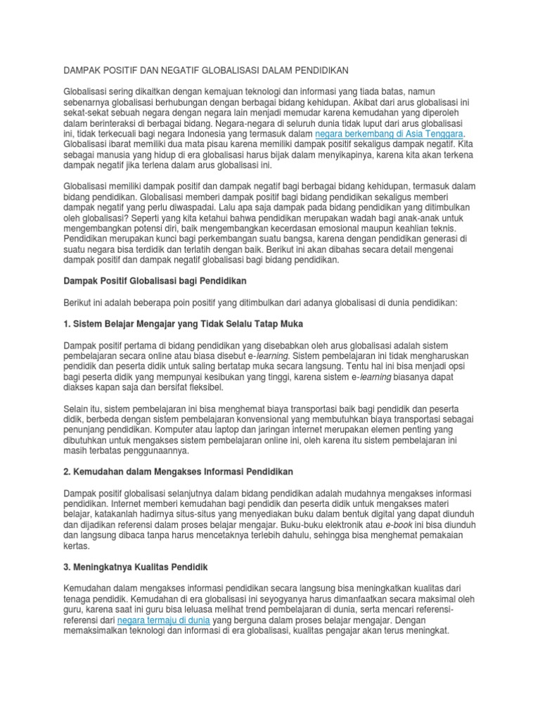 Dampak Positif Dan Negatif Globalisasi Di Bidang Pendidikan …