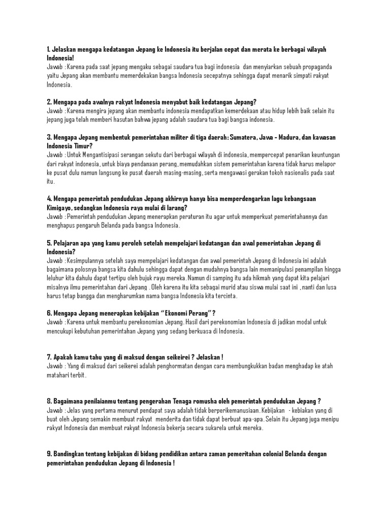 Soal Sejarah : Masa Kependudukan Jepang dan Dampaknya bagi Indonesia Versi 2 - Muttaqin id