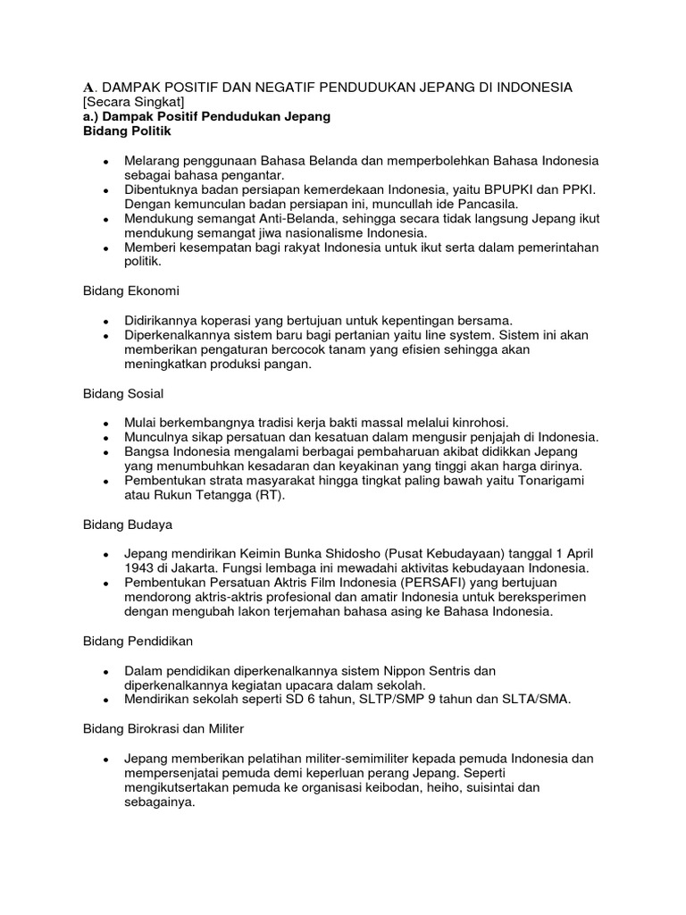 Sebutkan dampak positif dan negatif kedatangan jepang di Indonesia! - Brainly.co.id