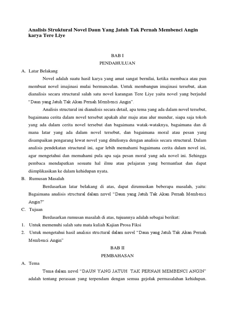 Analisis Struktural Novel Daun Yang Jatuh Tak Pernah Membenci …