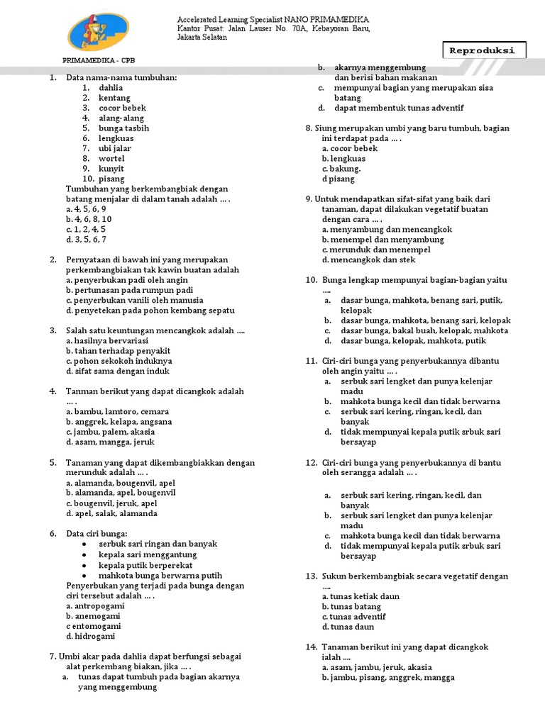 15 Soal dan Jawaban Reproduksi pada Tumbuhan dan Hewan Kelas 9 …