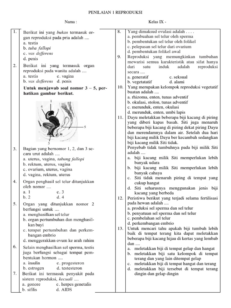 Soal dan Jawaban Uji Kompetensi 2 Sistem Perkembangbiakan pada …