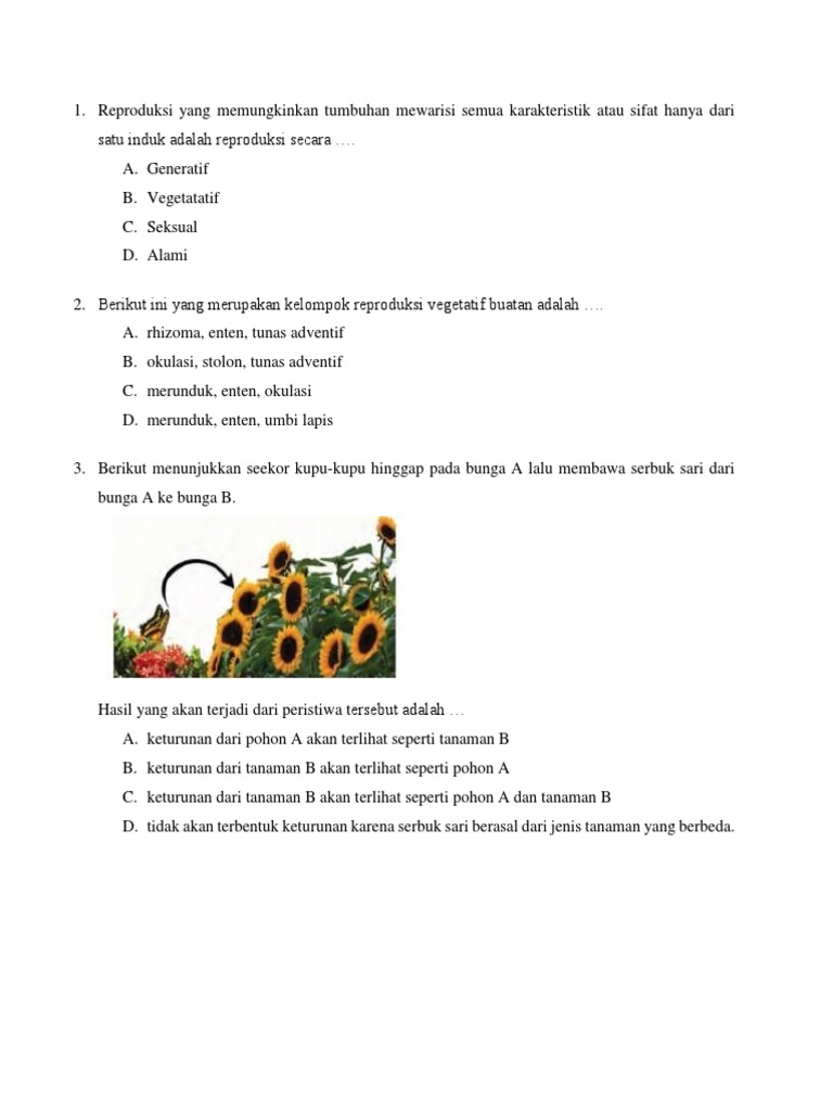 Latihan Soal Sistem Reproduksi Tumbuhan dan Kunci Jawabannya