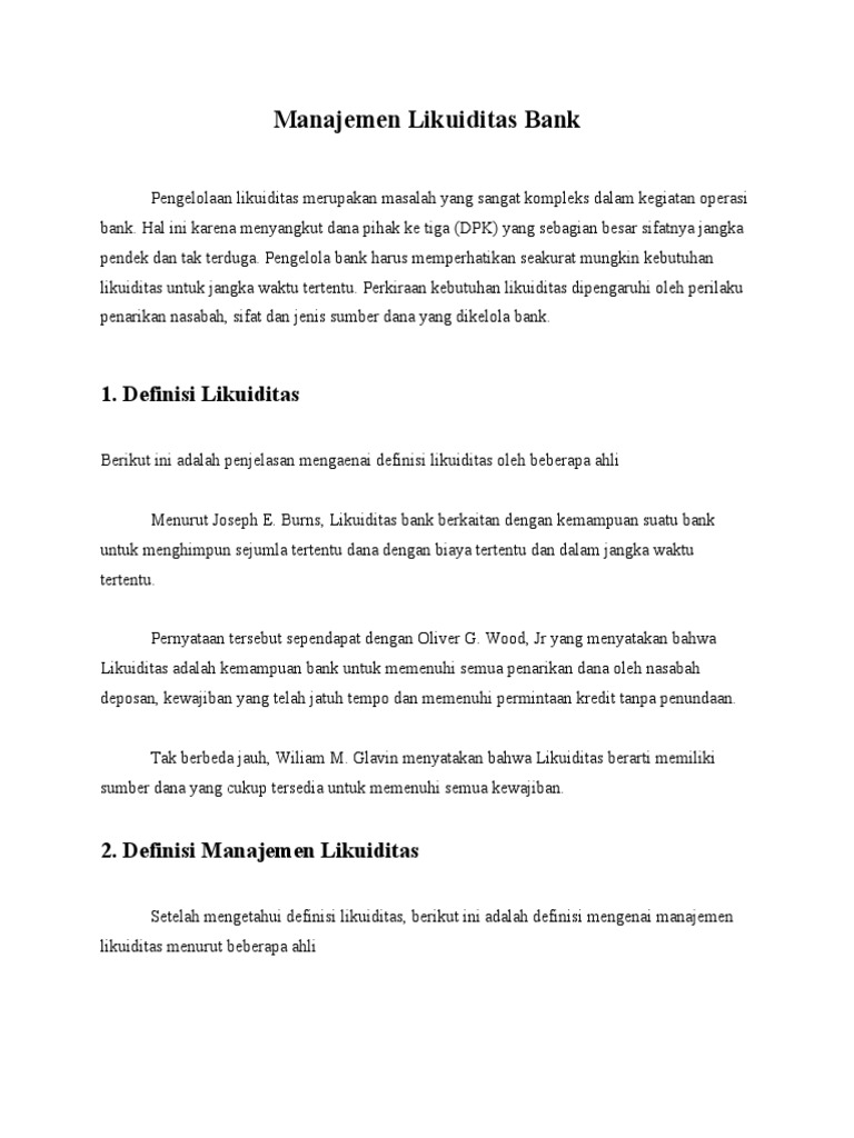 Berikut ini penjelasan mengenai definisi likuiditas menurut para ahli antara | Course Hero