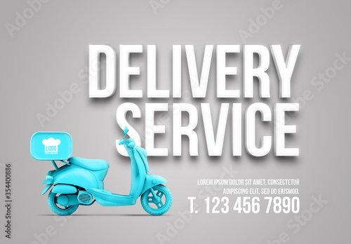 Delivery Service Advertising with Text and Color Motorcycle Mockup. Buy this stock template and explore similar templates at Adobe Stock | Adobe Stock