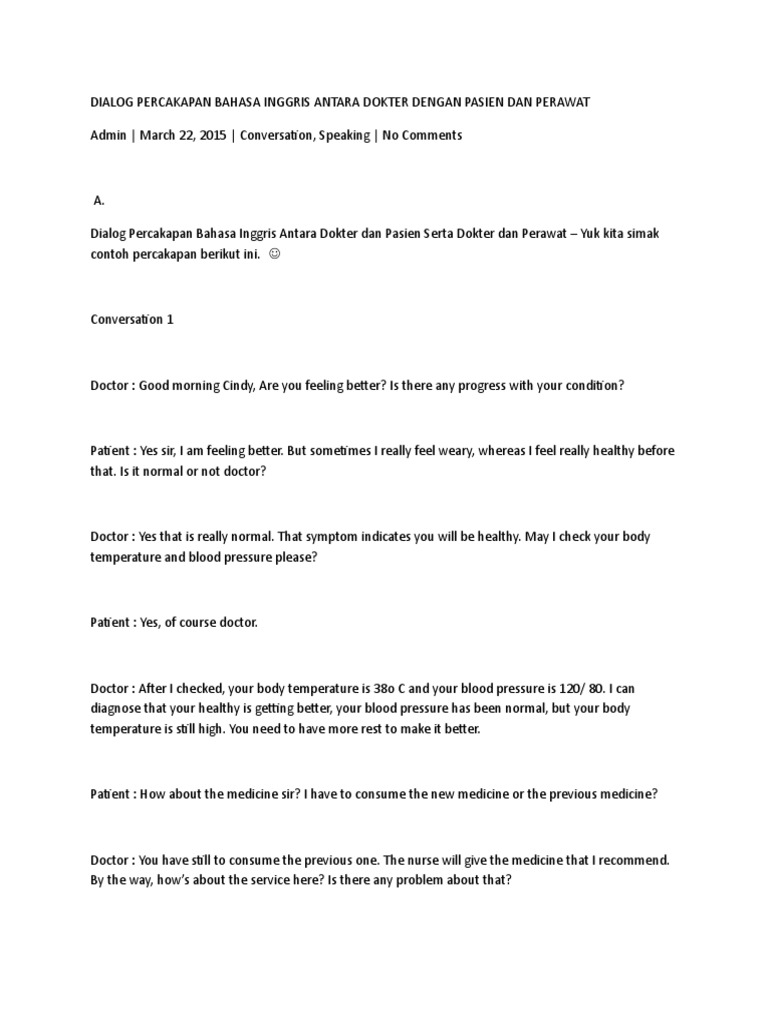 Contoh Percakapan Bahasa Inggris 4 Orang Tentang Kesehatan Dan Artinya [34m7kwrp9846]