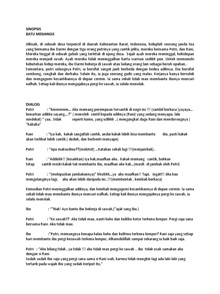 Buatlah naskah drama cerita rakyat BATU MENANGIS versi singkat …