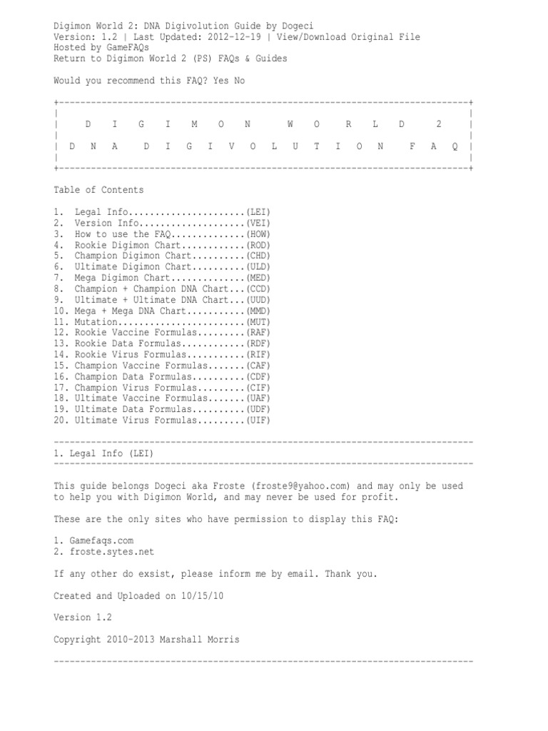 Digimon World 2 Dna Digivolve - DNA Informasi