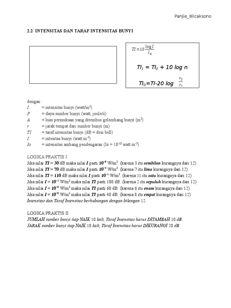 I= P A I= P TI =10 I: 2.2 Intensitas Dan Taraf Intensitas Bunyi