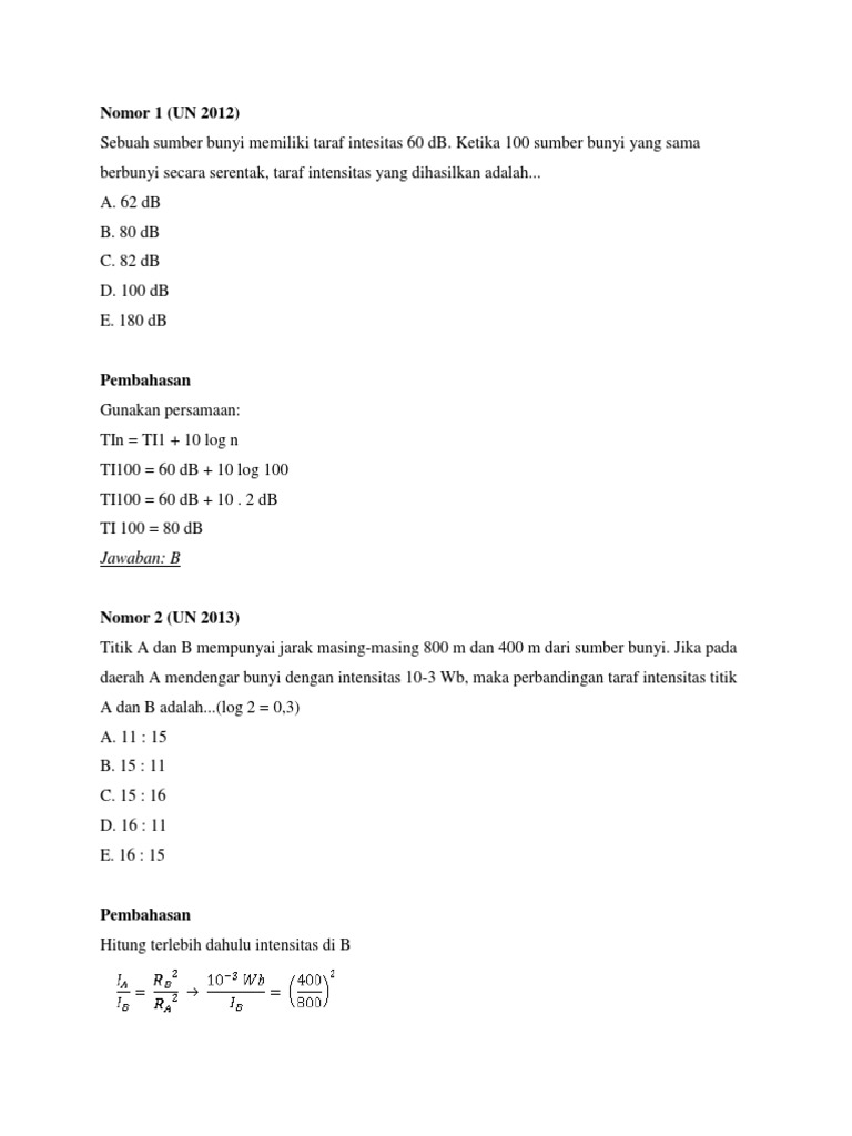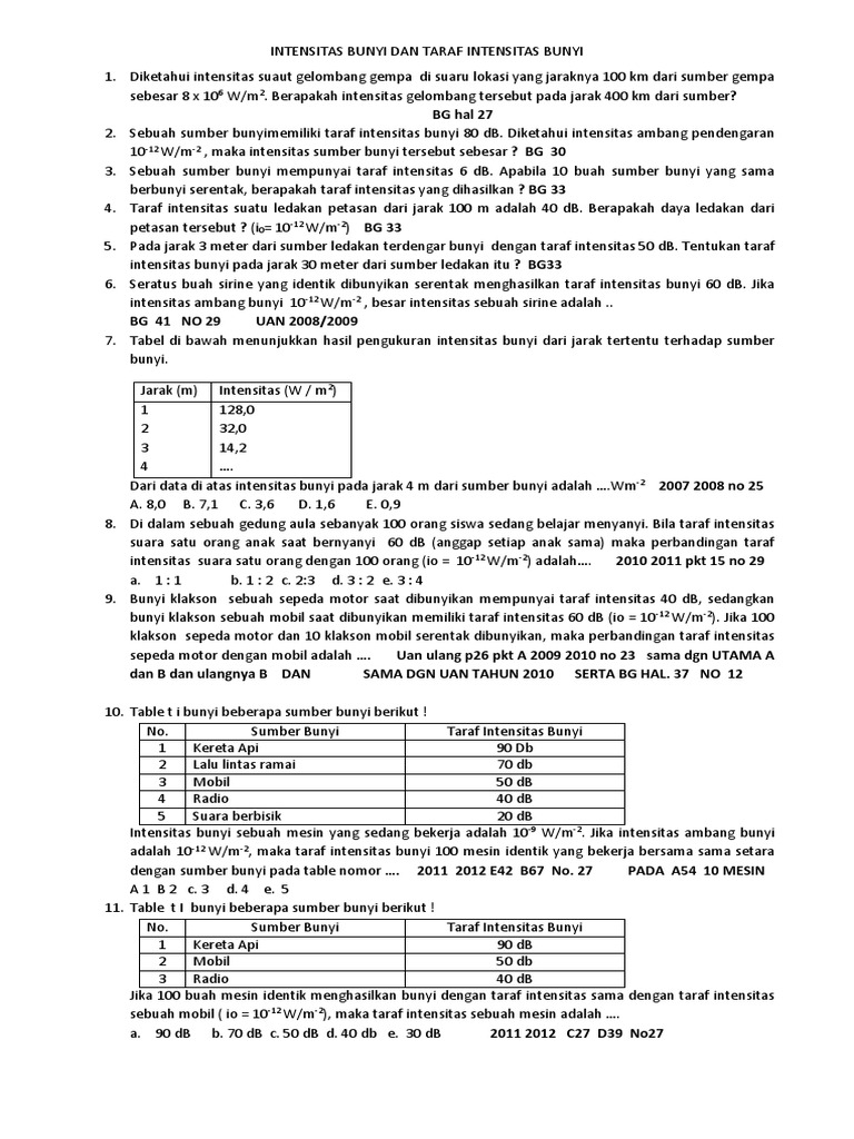 Contoh soal taraf intensitas dan penyelesaiannya – Soalfismat.com