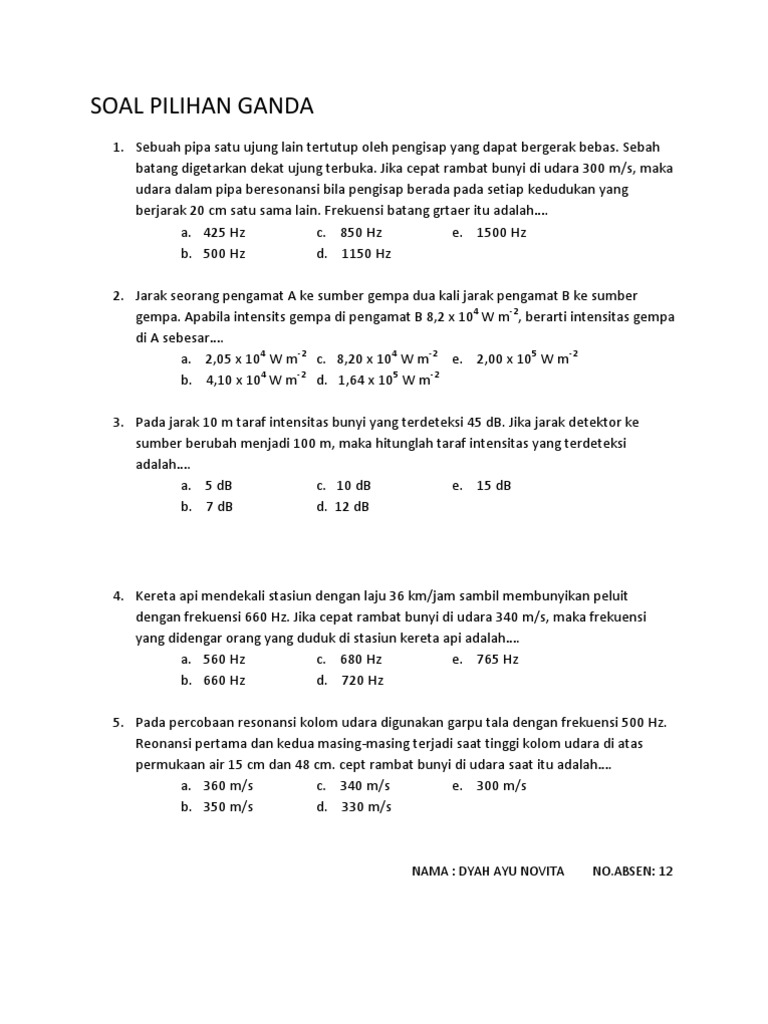 Soal dan Pembahasan Gelombang Bunyi Kelas XI IPA - Curahan …