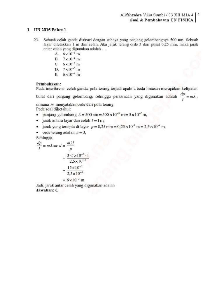 SMART SOLUTION UN FISIKA SMA 2013 (SKL 4 Indikator 4.6 Intensitas …