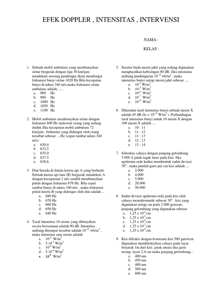 Intensitas Taraf Intensitas Dan Efek Doppler