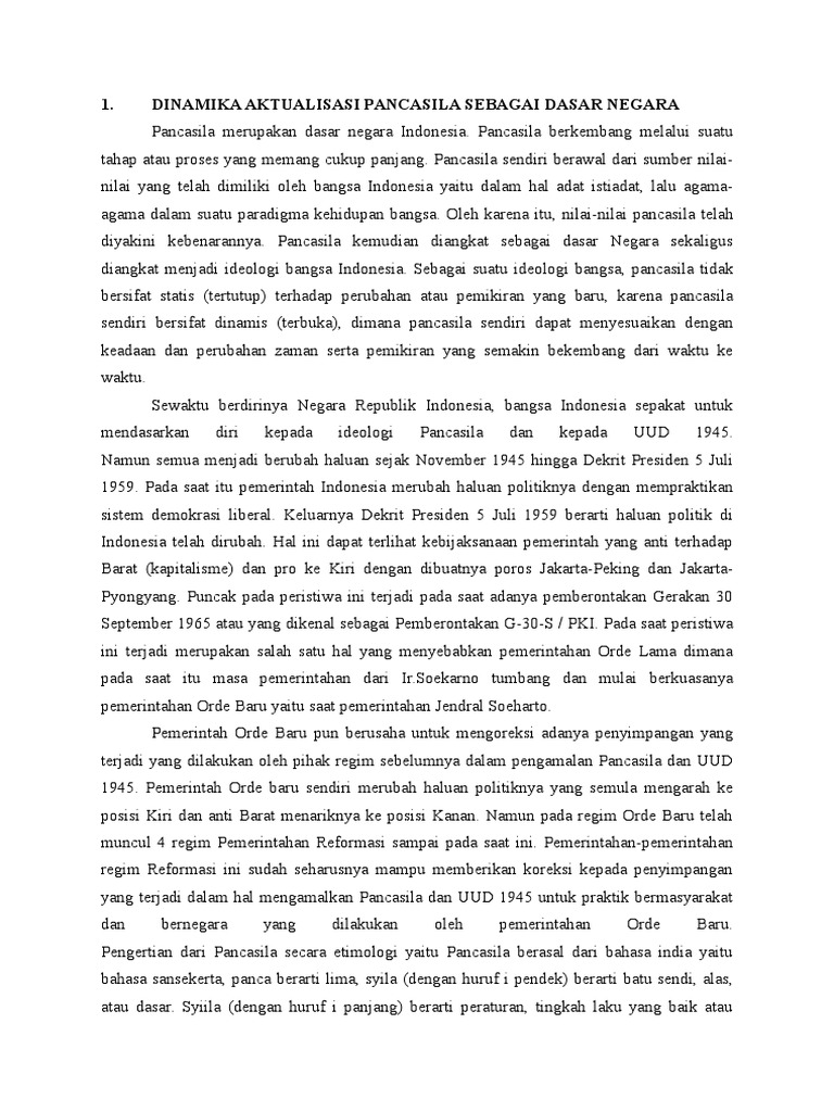 Makalah “Dinamika Aktualisasi Pancasila Sebagai Dasar Negara …