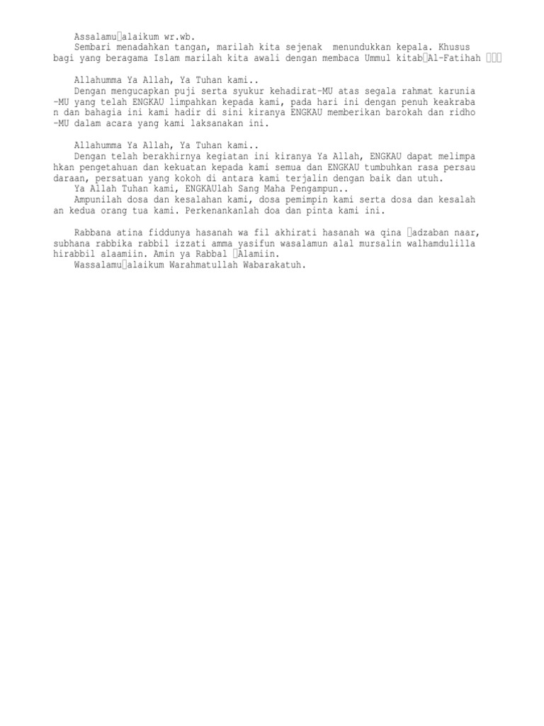 DOC) Teks Doa Pembuka dan Penutup dalam Acara | Nurfaizah Divia …