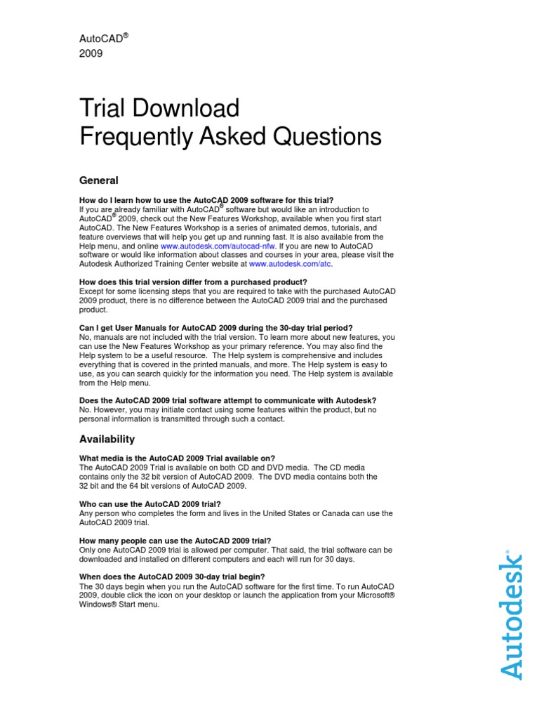 Autocad 2009 Trial Download Faq | Auto Cad | Microsoft Windows