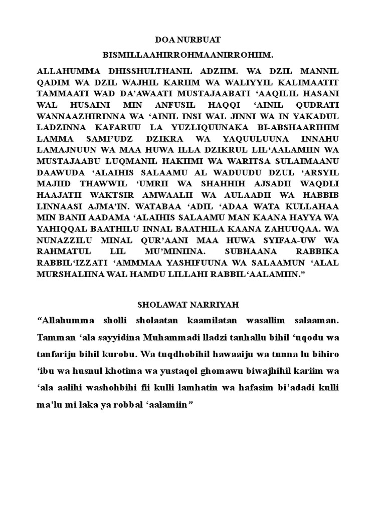 Doa Nurbuat Agung Ukuran Besar Lengkap Arab Latin Dan …