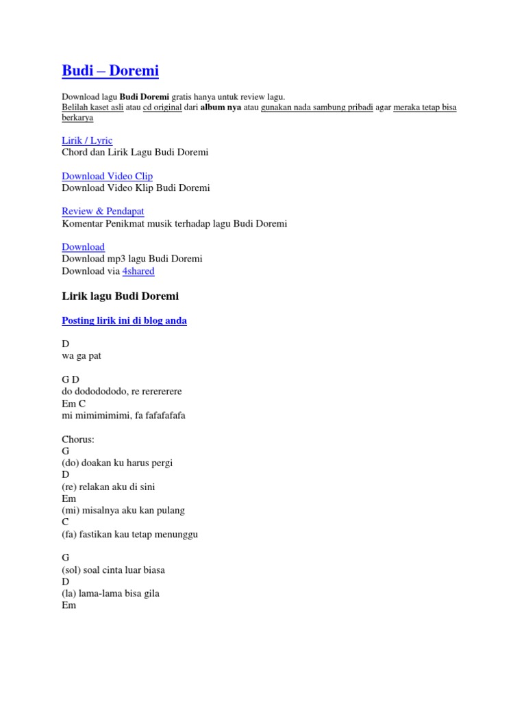 Lirik dan Download Lagu Budi DOREMI | duniatehnikku