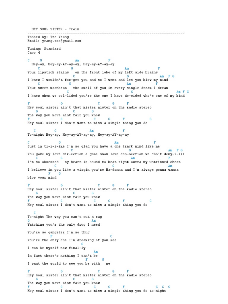 Hey Soul Sister - Train - chords & lyrics Chords - Chordify