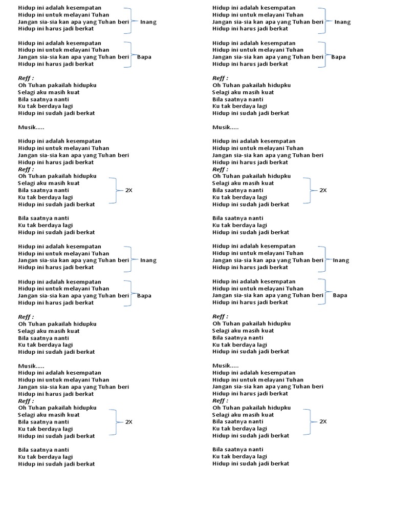 Lirik lagu Rohani Kristen - Hidup ini adalah kesempatan - Wattpad