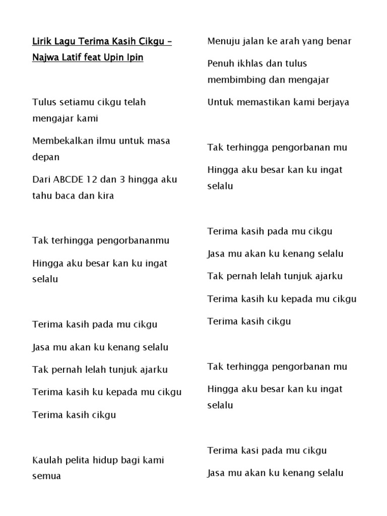Lirik Lagu Terima Kasih Cikgu By Najwa Latif Feat Upin Ipin …