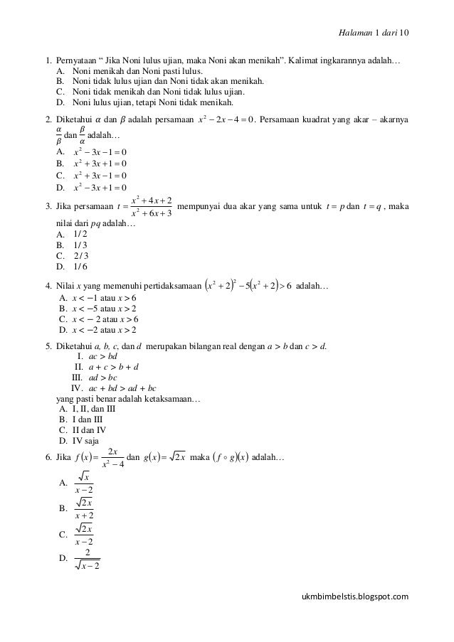 SOAL STIS 2021 dan Pembahasan (SPMB STIS 2021) - PAGUNPOST