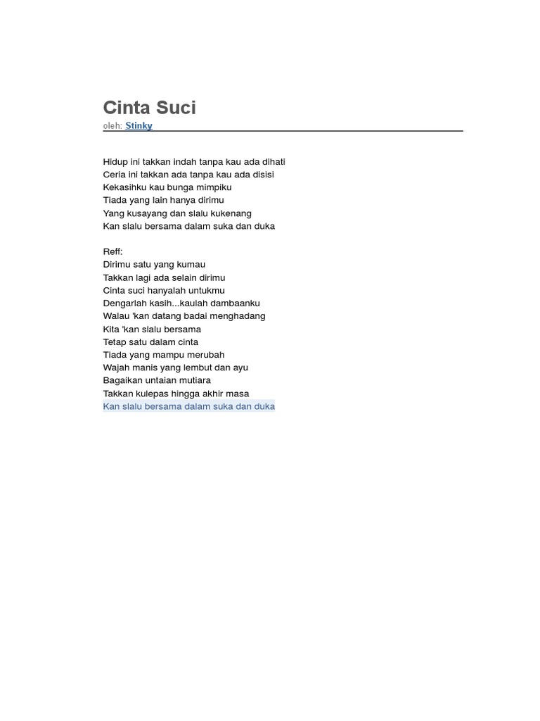 Free download lirik lagu stinky cinta suci