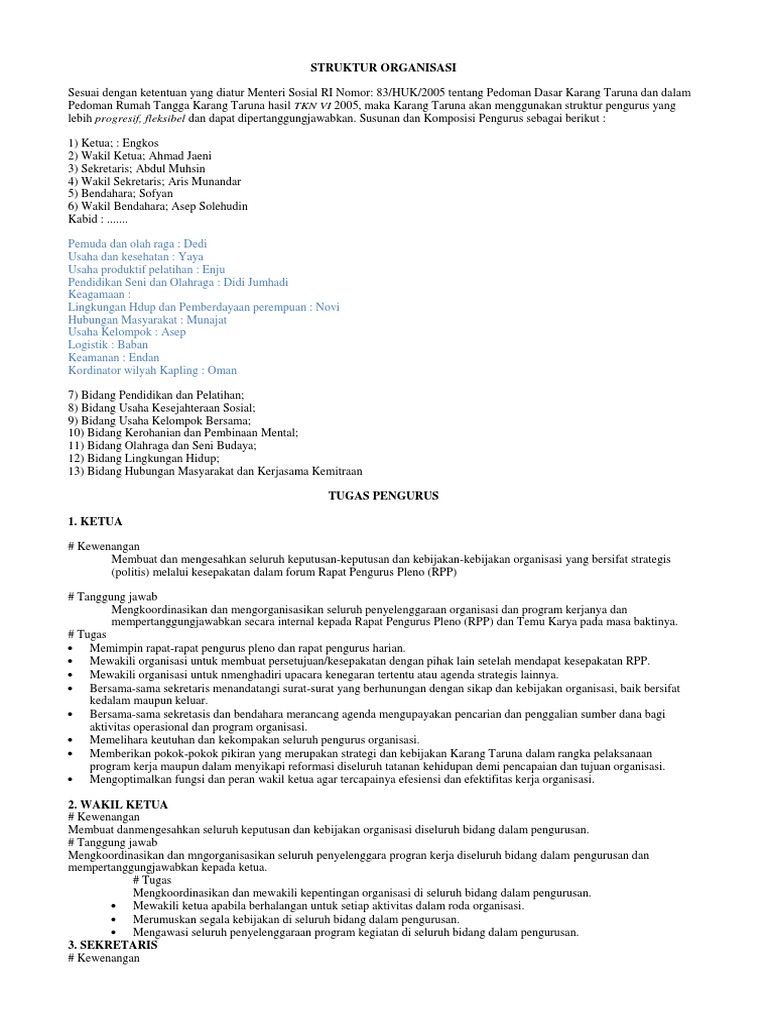 Struktur Organisasi Karang Taruna Pdf