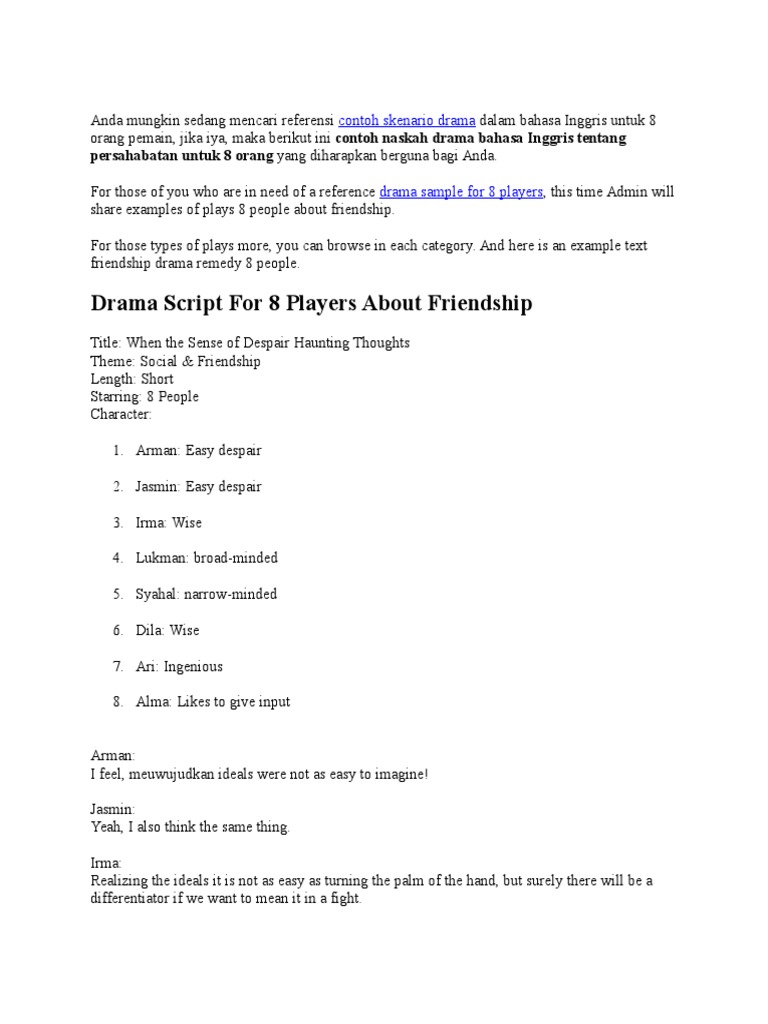 8 Contoh Naskah Drama Teater 6 Orang Tentang Persahabatan