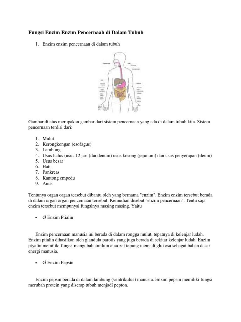 Fungsi Enzim Enzim Pencernaah Di Dalam Tubuh