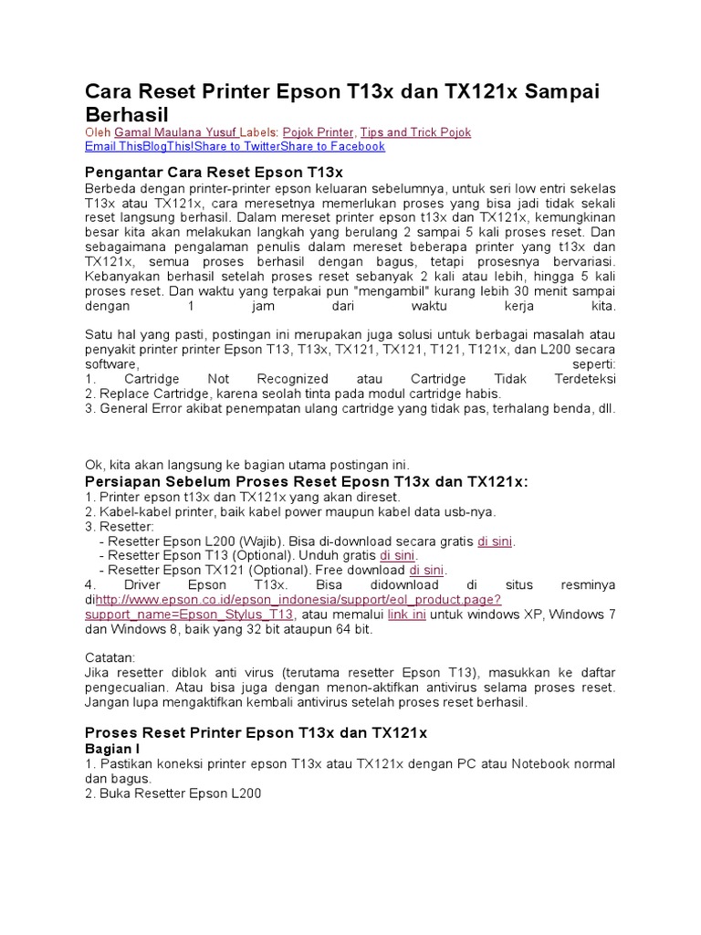 Download Epson Stylus T13x Resetter Dan Cara Reset | Bagusin Printer