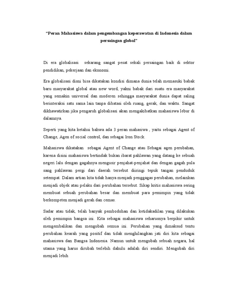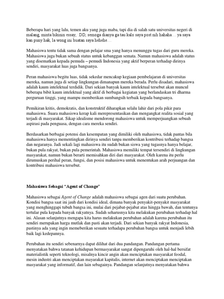 Contoh essay tentang peran mahasiswa sebagai agent of change