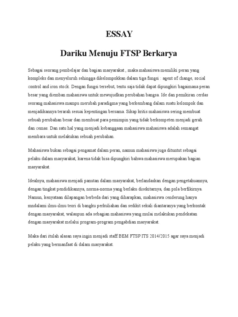 Essay Diriku Untuk Bem FTSP Berkarya