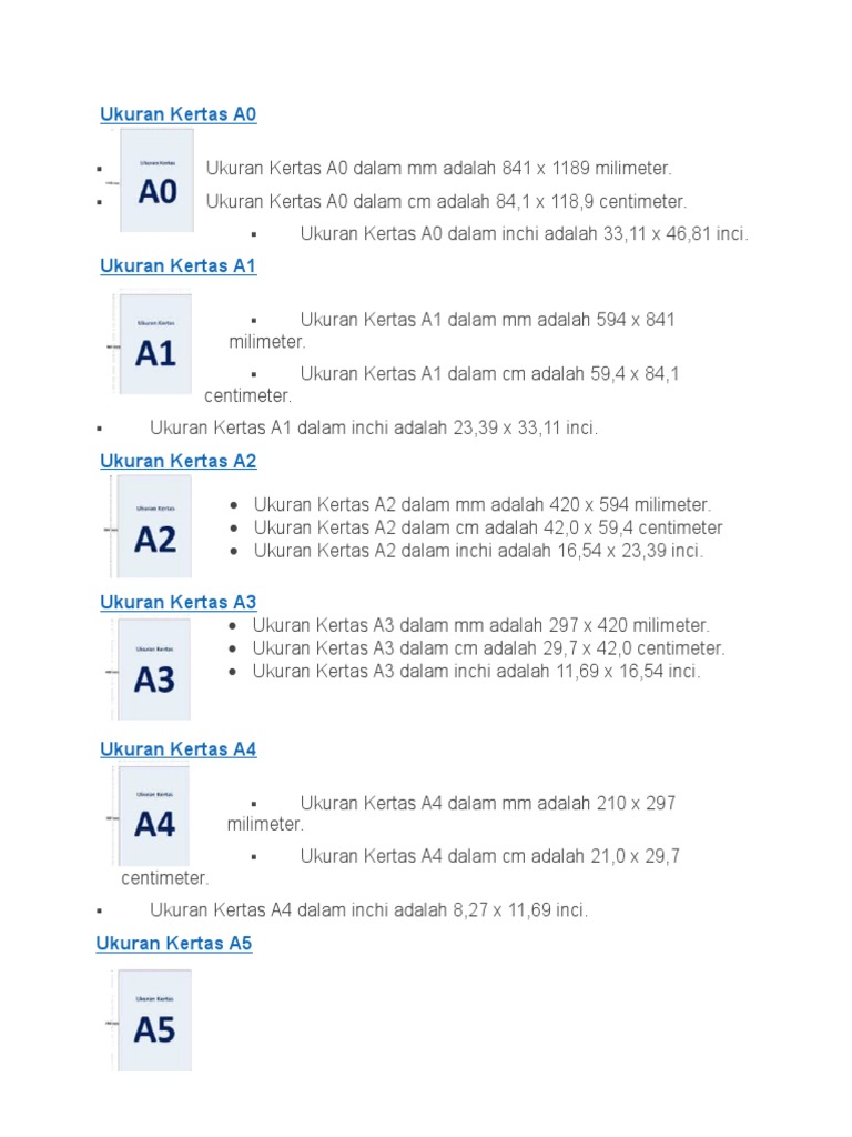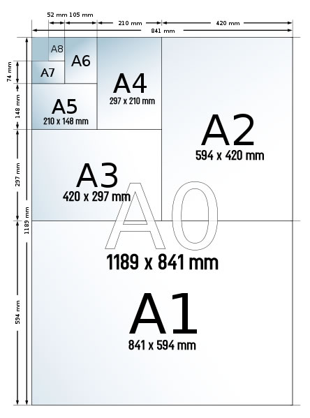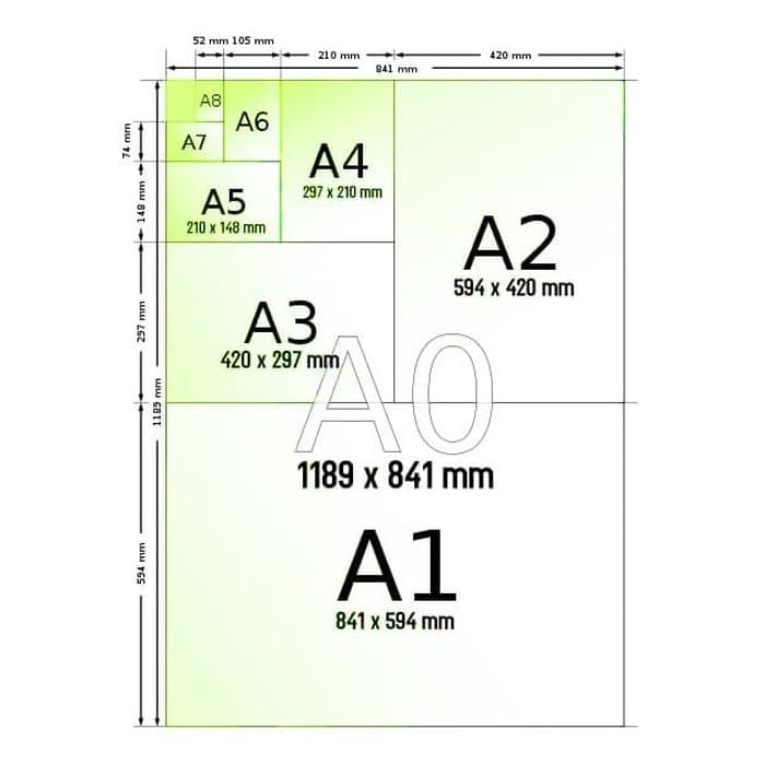 Ukuran Kertas A0, A1, A2, A3, A4, A5, A6, A7, A8, A9, A10 (mm, cm, inci) - Aura Ilmu
