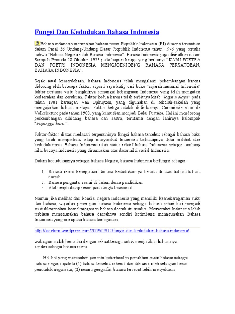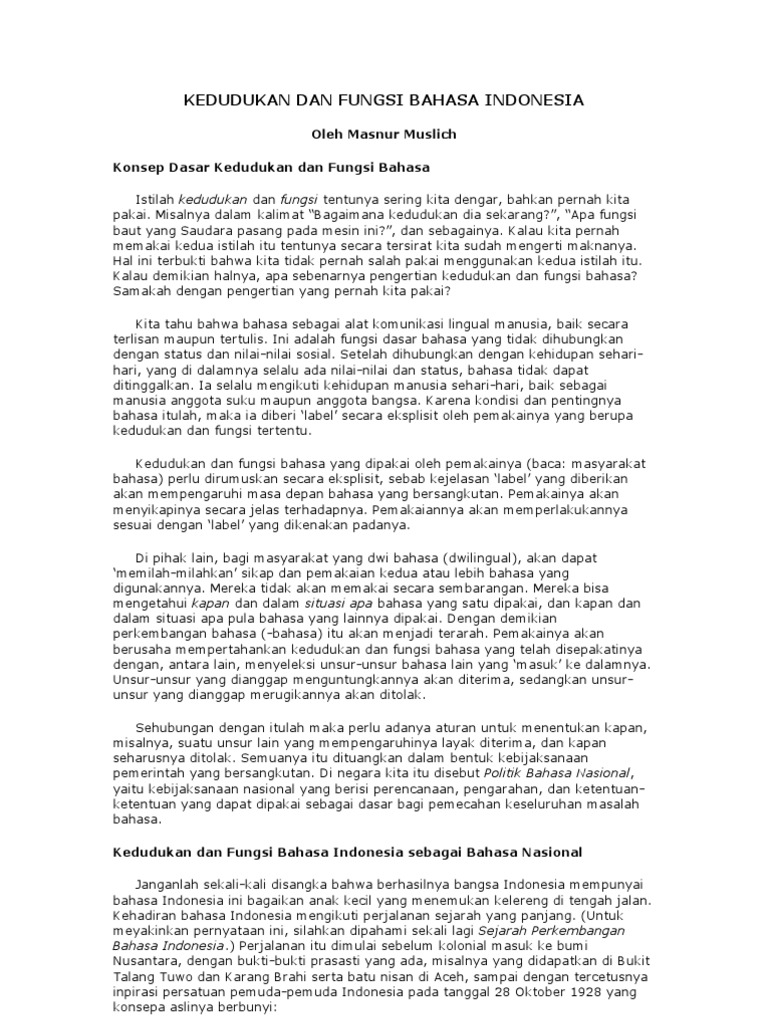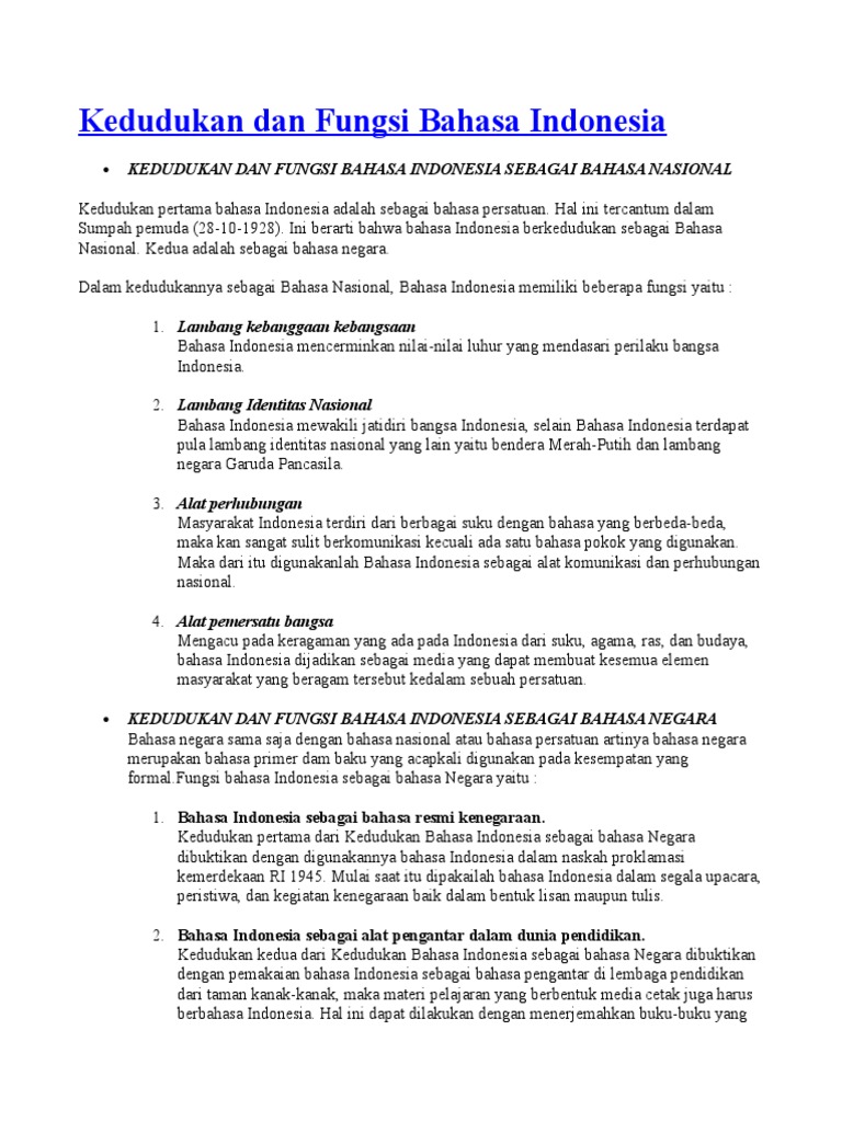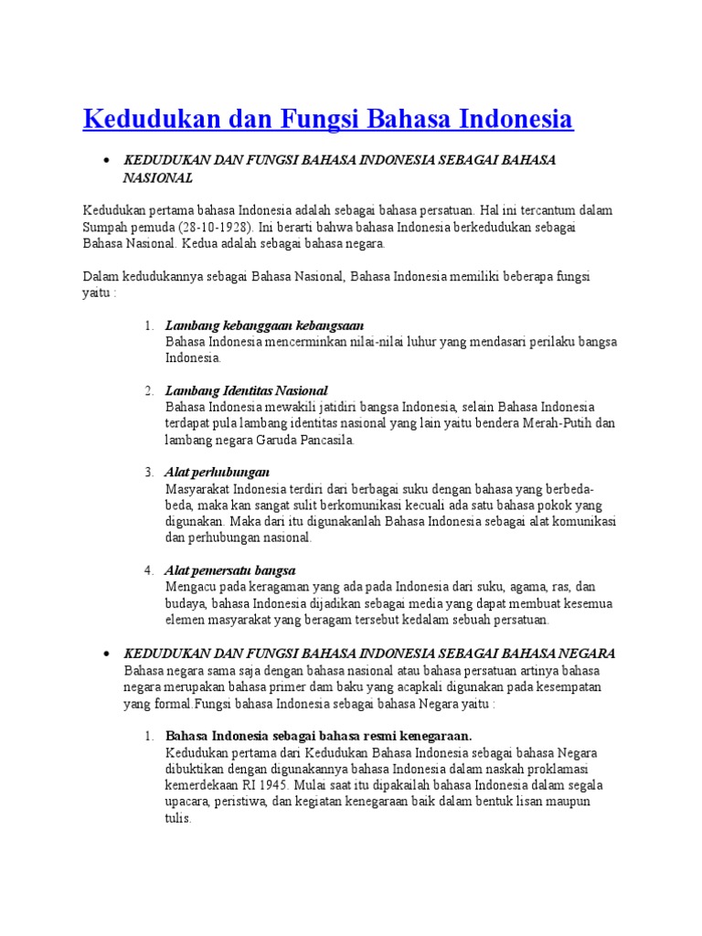 DOC) KEDUDUKAN DAN FUNGSI BAHASA INDONESIA | Thya Buble - Academia.edu