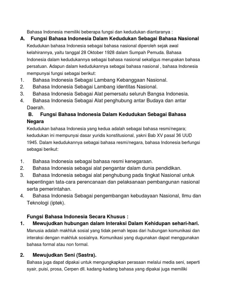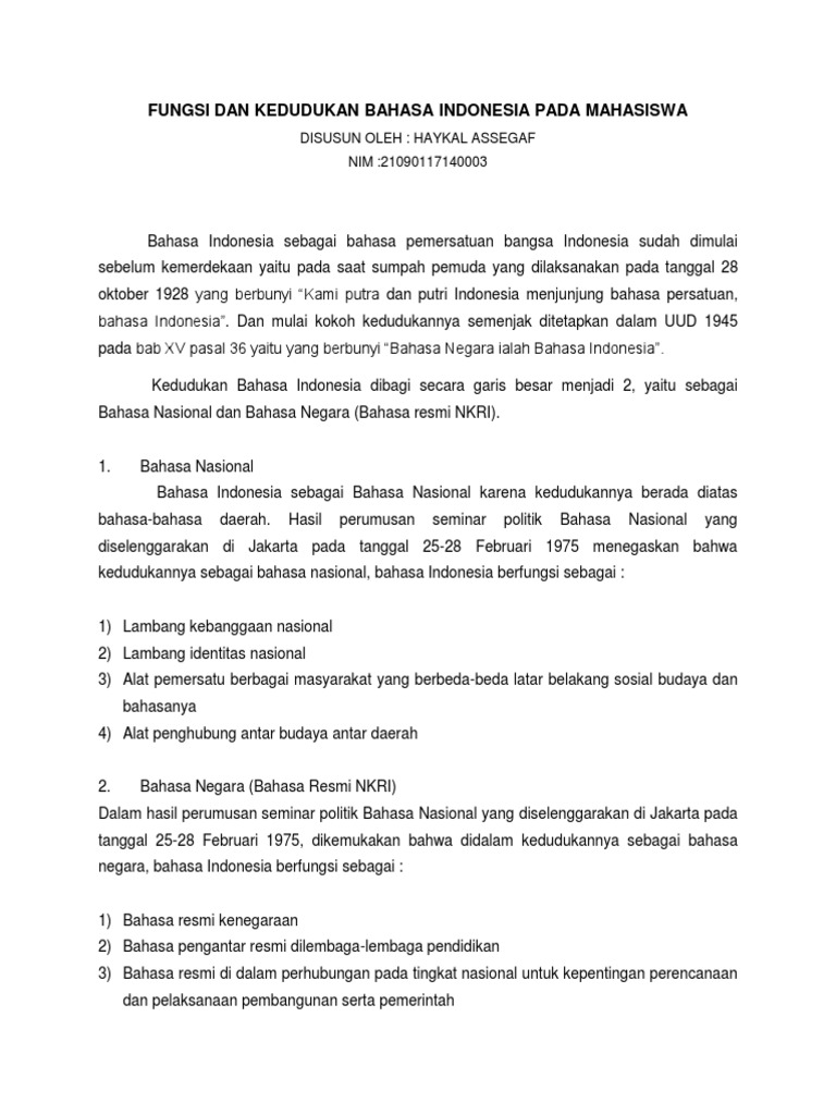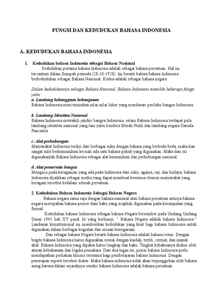 DOC) Fungsi dan Kedudukan Bahasa Indonesia | Widi Hazard …