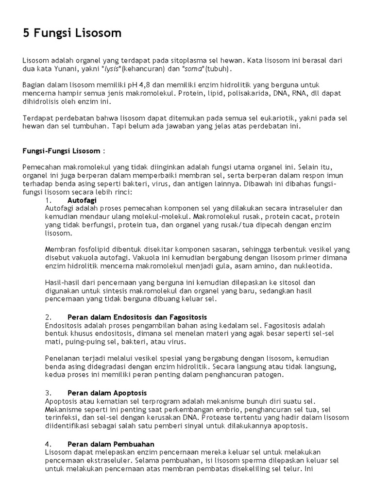 Cerdas Biologi: 5 FUNGSI LISOSOM