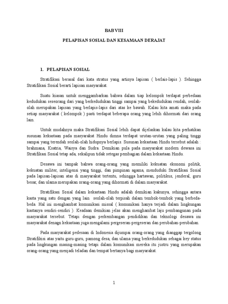 Bab Viii Pelapisan Sosial Dan Kesamaan Derajat