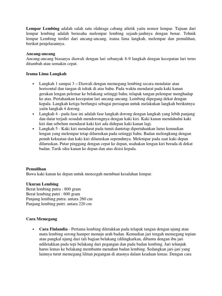 √ Lempar Lembing: Sejarah, Aturan, dan Teknik-Teknik Dasarnya …