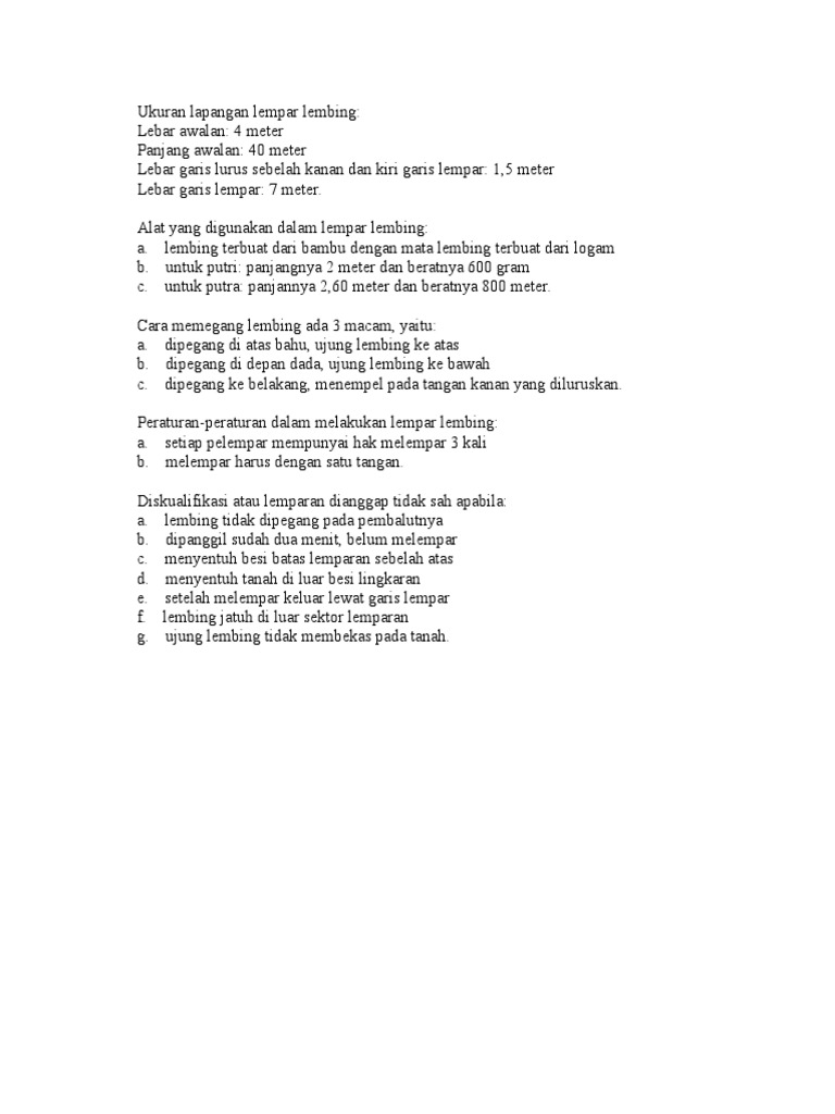 Ukuran Lapangan Lempar Lembing Standar Internasional - ATURAN PERMAINAN