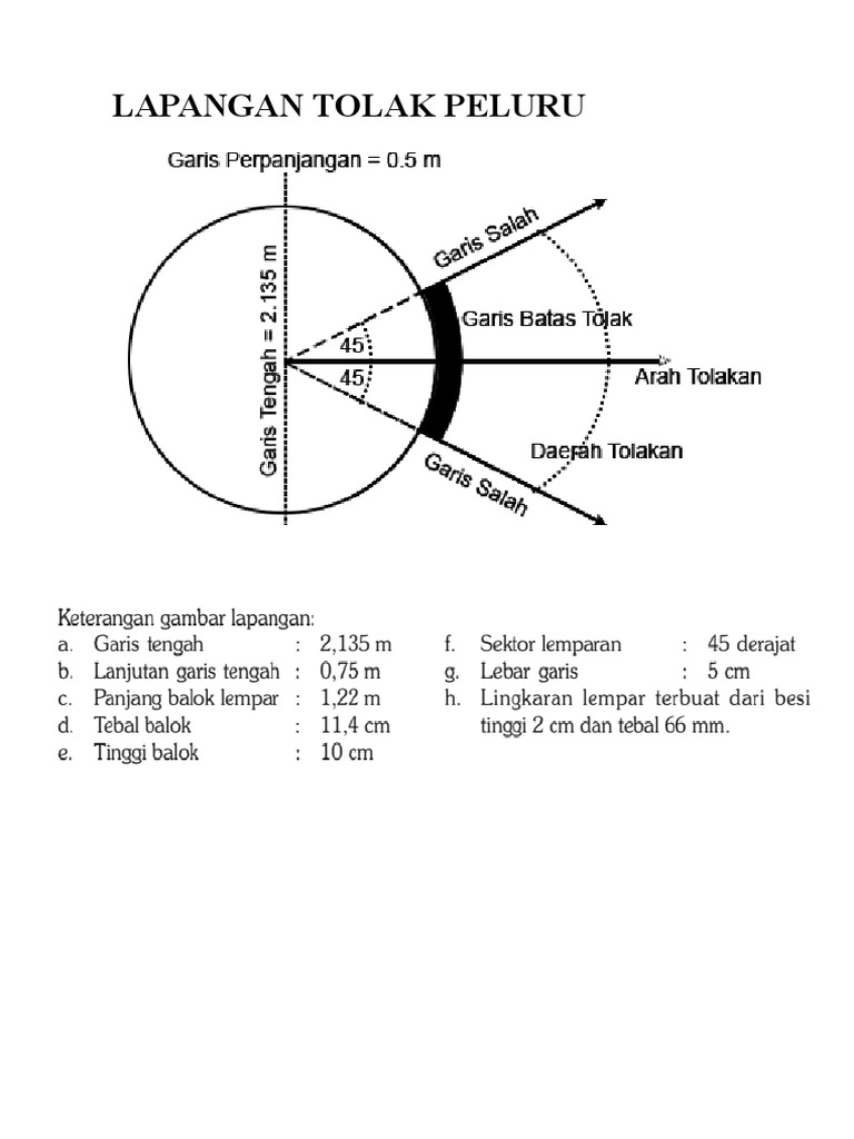 Ukuran Lapangan Tolak Peluru. | Tolak peluru, Peluru, Lompat jauh