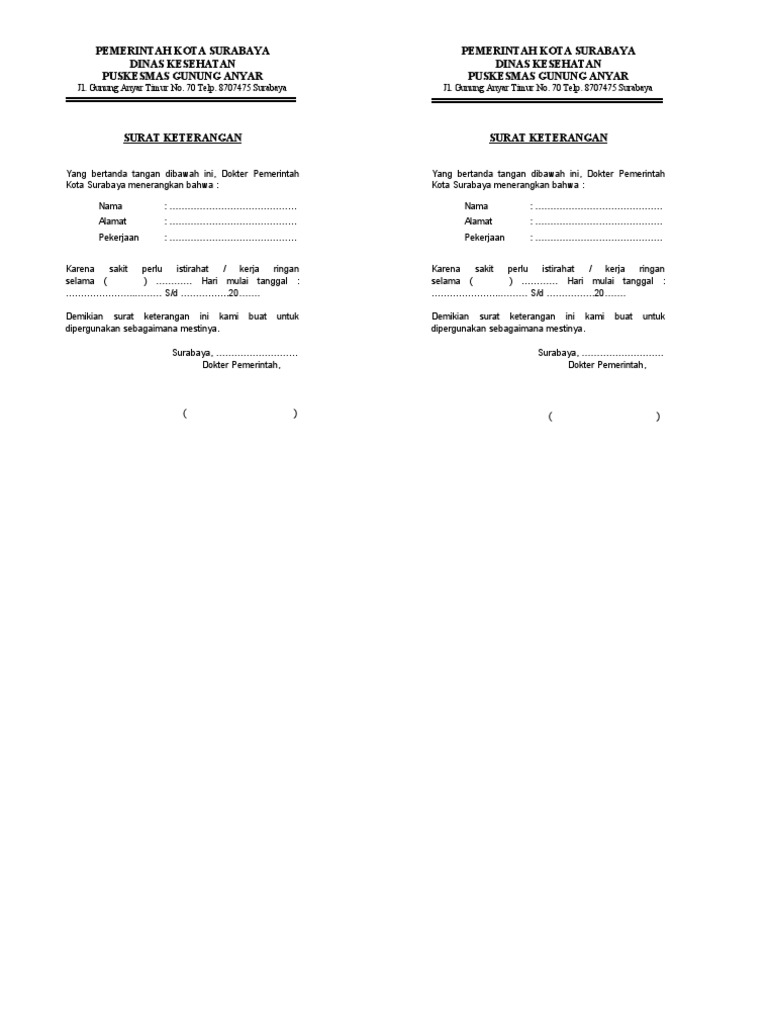 Contoh Surat Dokter Puskesmas Depok