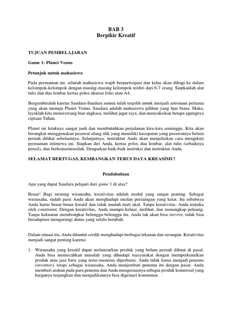 Bab 3 Berpikir Kreatif: Tujuan Pembelajaran Game 1: Planet Venus …