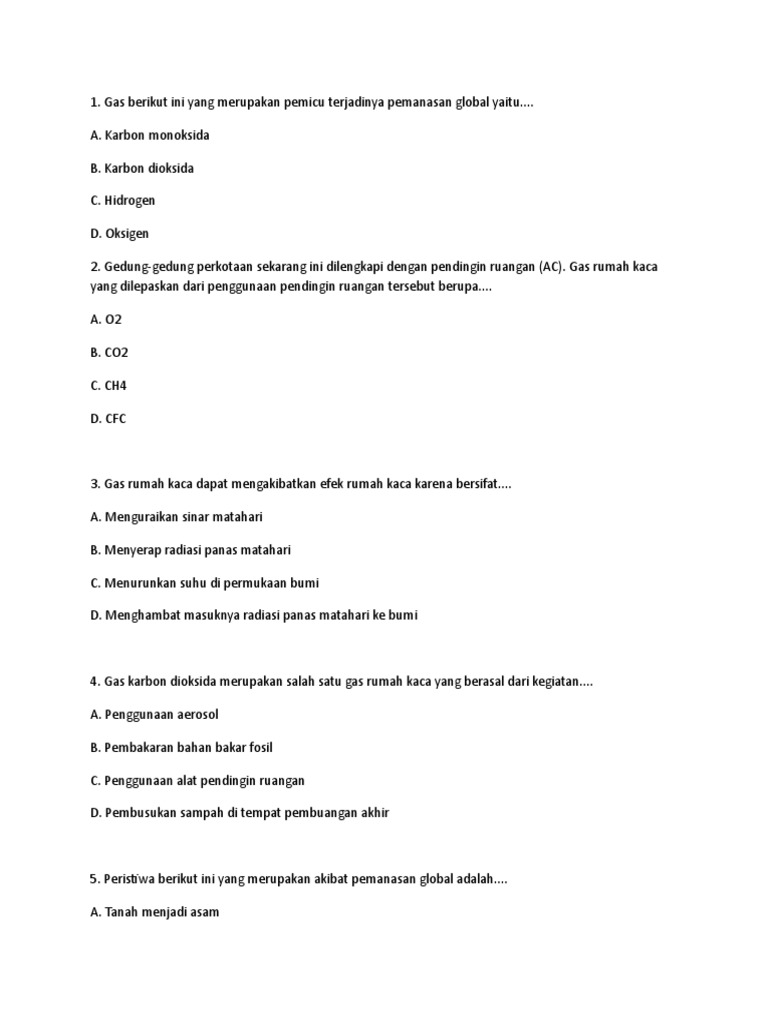 1. Jelaskan pengertian efek rumah kaca dan pemanasan global! 2. Sebutkan gas -gas pemicu terjadinya - Brainly.co.id